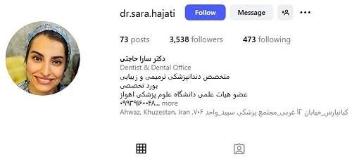 دکتر دندانپزشکدکتر سارا حاجتی، متخصص برجسته دندانپزشکی ترمیمی و زیبایی در اهواز، با بیش از یک دهه تجربه خدمات متنوع و حرفهای به بیماران ارائه میدهند. ایشان دارای بورد تخصصی دندانپزشکی ترمیمی و زیبایی و عضو هیئت علمی دانشگاه علوم پزشکی اهواز هستند. دکتر حاجتی با تخصص و دقت بالا، درمانهایی مؤثر و ایمن ارائه میکنند تا سلامت و زیبایی لبخند بیماران تضمین شود.