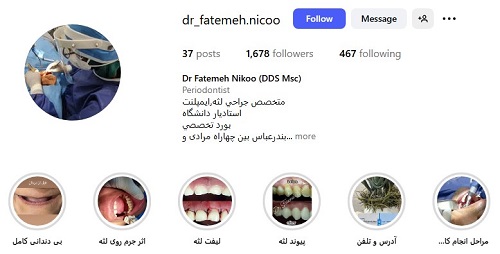 دکتر دندانپزشکدکتر فاطمه نیکو دندانپزشکی متخصص است که در زمینههای جراحی لثه، ایمپلنت و درمانهای ترمیمی تجربه گستردهای دارد. او با دقت و مسئولیتپذیری بالا به سلامت دهان و دندان بیماران اهمیت میدهد و تلاش میکند بهترین نتایج درمانی را ارائه کند. مهارت، دانش بهروز و برخورد صمیمی او باعث شده در میان بیماران با اعتماد و رضایت بالا شناخته شود.