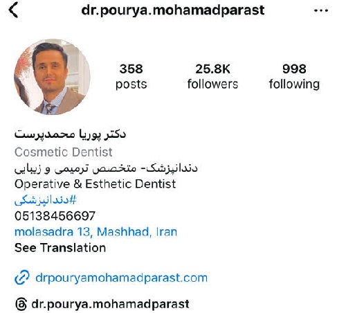| دکتر پوریا محمدپرست | مشهد، ملاصدرا | 09337486969 |