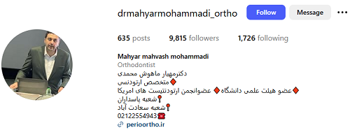 دکتر مهیار ماهوش محمدی، متخصص ارتودنسی و ناهنجاری های فک، از چهره های علمی و فعال این حوزه به شمار می روند. ایشان مؤلف چندین کتاب تخصصی در زمینه ارتودنسی هستند و مقالاتش در مجلات علمی بین المللی منتشر شده است. عضویت در انجمن ارتودنتیست های آمریکا نشاندهنده ی به روز بودن ایشان با دانش روز دنیا است.