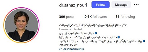 دکتر ساناز نوری با شماره نظام پزشکی 162956، 9 سال سابقه درخشان در دندانپزشکی دارند. ایشان فلوشیپ ترمیمی و زیبایی را دریافت کرده و تمرکز ویژه ای بر درمان های دقیق و ظریفی همچون درمان یا عصب کشی دارند. مهارت های تخصصی ایشان، لبخندی طبیعی و هماهنگ برای بیماران خلق می کند.